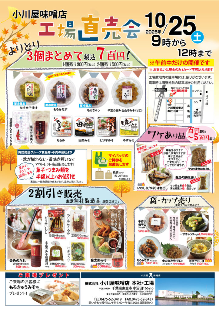10月の小川屋直売会は25日(土)9時より12時まで開催しております。