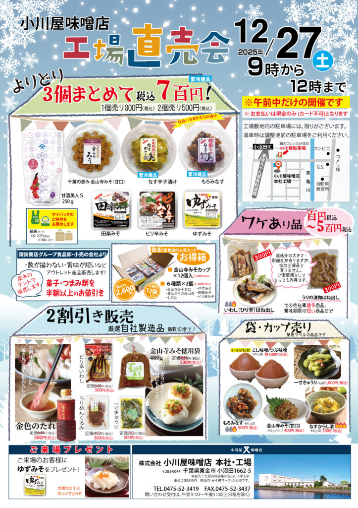 11月に開催したみそサミットで大好評だったため、直売会でもやっちゃいます!!